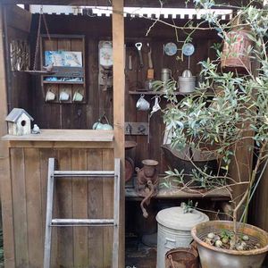 念願の小屋完成しました✨✨💕💕 仕事から帰って暗くなるまでコツコツと大工してくれた旦那に感謝✨ 小さな庭ですがこれからもっとガーデニングが楽しくなります╰(*´︶`*)╯♡