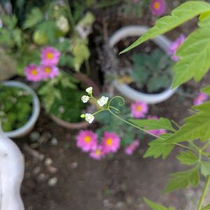 風船葛がまだ咲いてます🤭 こぼれ種であっちゃこっちで🌱芽吹いては成長します。