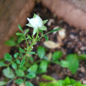挿し木の薔薇に初めて蕾が付きました🙌🌹🌱 品種はアルバメイディーランド(白)でした😁 本体はカミキリ虫にヤられました😅💦 気が付くと伸びた枝が地面に付いて自然の根伏せとなり、復活してました🙌これはその枝を剪定したときの枝から産まれた物です🎵 植物は逞しいですね~(@^^)/~~~