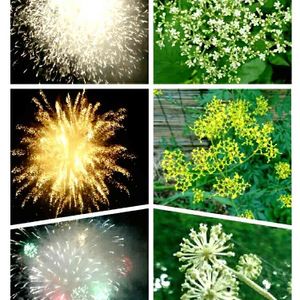 【似てるシリーズ】 ~仙台・七夕祭り🎋の前夜祭の花火🎆とお花🌻~ 縦にも横にも見ていただけると、うれしいです。 ◆仙台・野草園で出会ったお花 ○右側・上 オトコエシ(男郎花) でしょうね。 オミナエシ(女郎花)と比べて、花の色が白く、地味で、大きく、男性的な感じがすることから、この名前が付いたそうです。 そんな花の名前を初めて知りました。 ○右側・中 オミナエシ(女郎花) 秋の七草の一つですね。 オトコエシ(男郎花)とオミナエシ(女郎花)は、花の色の違い以外は、ほんと、よく似ています。 私は、野草園で、両者を見比べているうちに、これは使える💡😀とうれしくなりました。 右側・下 ウド(独活)の花 若芽の頃が食べ頃ですね。私は、やはり、天ぷらだなぁ~ 「ウドの大木」と言われますが、ウドは、樹木ではなく、草なんです。 ウドは、大きく育ちますが、茎が太くなった頃には食べられず、木材になるものでもないことから、「大きくても、中身が伴わず、役に立たないもの」のたとえとして、「ウドの大木」と言われます。 これらのお花を見ていると、花火🎆みたいだなあ~と思い、花火に似たお花で【似てるシリーズ】を思いつきました。 そして、それなら、本物の花火と比べてみようと思い立ち、ちょうど仙台・七夕祭りの前夜祭の花火大会で撮った花火の写真があったので、登場してもらいました。 横に見比べて、(似てないよ😠とは言わず)、【似てるシリーズ】の雰囲気を楽しんでいただいた後 花火をタテに見て、8月が終わろうとしているこの時期、少しでも夏の花火気分を味わっていただけたら、とてもうれしいです。 ちょっと遊びが入ってしまった【似てるシリーズ】ですが、お許しください🙇 これを許していただけないと、次回のお笑い🤣の【似てるシリーズ】をお届けできなくなります🤣🤣😎 よろしくお願いします。🤗❗