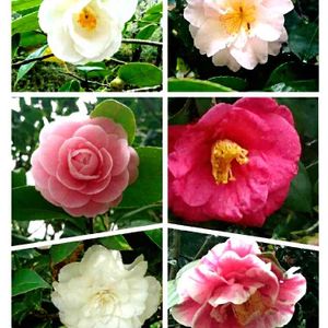 【似てるシリーズ】 たくさんの素敵なお花! どれも、椿? ○右側 福岡で出会った (右上) ハルサザンカ「梅ヶ香」 (右中) 椿 (右下) 椿「光源氏」 ○左側 仙台で出会った椿