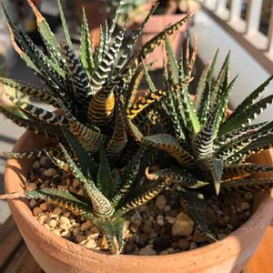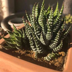 ハオルシアの中で、我が家での一番の古株 って、小っちゃいやん( ༎ຶ ◡︎༎ຶ)ちーん 実は、2年前にやっちまいましたトホホ😭💦 カイガラムシ攻撃で悲しい事になってしまいました(x_x) 根までやられてる部分もあり.... で哀れな姿になってしまいました〜(゚〇゚;) この倍以上の群生株で、とてもかっこ良くなっていたのに....😭💦 何とか対処して2年。 未だこんな感じ(σ・з・)σ 新しい葉が展開してきているので、 気長に育てて 又 かっこ良くしたいです( ・ㅂ・)و ̑̑ 素焼き鉢に植えてしまってますね。 春に植え替えます。
