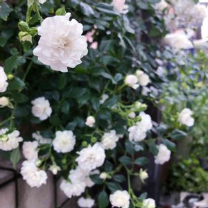 ちょっと目を離すとぐんぐん伸びるシュート😅 狭いお庭が鬱蒼としてきたのでちょっとがっつり切ったほうがいいのかなと 剪定ほーんとわからない💦 picは少し前の ミニバラ スノーシャワーさんです🌹