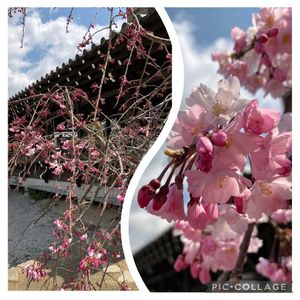 おはようございます。\(//∇//)\ 先日行った京都御苑の枝垂れ桜🌸と山桜🌸です。ただ今桜が満開です。 5枚組です見てね!👍👍