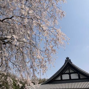 今日の花 桜🌸 枝垂れ桜🌿横浜市専念寺🖼️ 江戸彼岸由来の枝垂れ彼岸だと思います。来週隣の紅枝垂れも満開でしょう🎶