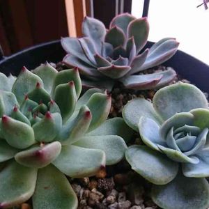 今日は連投失礼します(´。・д人)゙ 最近急に美人さんになったブルーオリオン(一番奥)。 他の子と一緒に撮影するとわかりやすいかな? ほんとにブルーなった(*´艸`*)♥️ ピンクの縁取りも超可愛くって、これからが楽しみな多肉ちゃんです(人´ з`*)♪