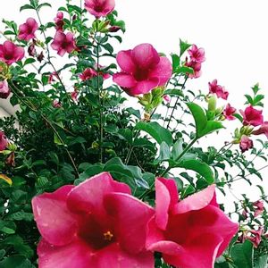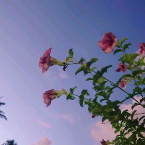 こちらはパープル(ピンク?)のアラマンダ。夕暮れの空によく似合いますね。