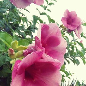 おはようございます!(^^)! 昨日は大雨!☔☔ 今朝は薄日が差していますー! 大きなお花!アラマンダですー!💜💜💜