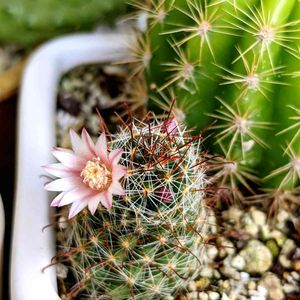 小さなサボテン🌵さんにお花が咲きました〜♡(ღ˘⌣˘ღ)ツボミが2個も❣️ 百均からお迎えして…しばらくするとしぼんでしまったサボテン🌵さん💦復活して欲しい〜と願いながら植え替えた子です❣️良かった〜(*´∀`*)🎶