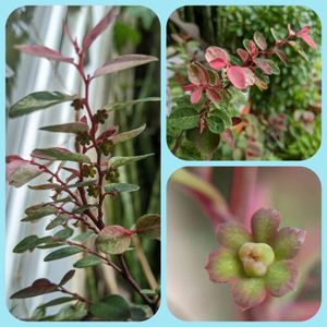 以前…7月にpic✨した子です🌿🌿🌿 紅葉🍁🍂した葉っぱばかり見て癒される〜🎶と真上ばかり見てて、ん??よく見たら…(⊙⊙)!!な・なんと!!小さなお花🌺が咲いているではありませんか!超〜(,,> <,,)♡カワイイ 左:お花全体 右上:真上から 右下:お花アップ