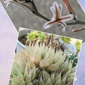 お鉢キチキチのハオルチア🌱に お花が咲きました〜❣️♪( ˶ᵔᵕᵔ˶و)و " この子🌱は、何回株分けしたことか…ホント凄い生命力です✨
