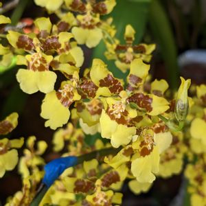 うちのオンシジュームᒼᑋªⁿ♥︎も 咲きました〜❣️(๑>ᴗ<๑) 今のところ…奴🐌にはやられてないな… キョロ(・ω・`三´・ω・)キョロ 左下の青いテープは、花芽が出た時に長すぎて先っぽを引っ掛けてしまい折れたのを補修しましたが…この子はダメでした(¯ᴗ¯٥) あと1本の補強は成功しました。ε-(´∀`;)ホッ