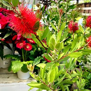 おはようございます😃 晴れてきました。爽やかな感じ〜😊🎶 ブラシの木って金宝樹と言う和名なんですね。 赤いガーベラがステキだった❣️ 先日行ったホームセンターにて🤳