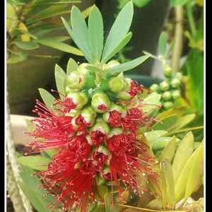 ブラシの木 金宝樹 咲きました 鮮やかな色に蕾可愛く 縁起の良い木だそうです 咲いてくれてありがとう