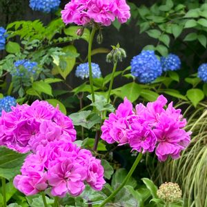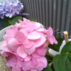 ①②水色とピンクの二種類あった紫陽花 霧島の恵み 全部 水色になったので一部 ピンクに戻そうと 成功した様な そうじゃない様な ③④花友さんからの紫陽花 今年も咲いてくれました 名前がわからないけど可愛いです