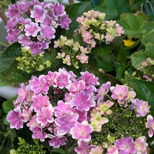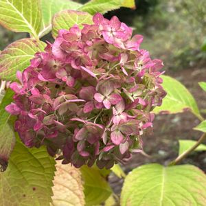 こんばんは🌛 アジサイの投稿2枚目です😃 霧島の恵み きれいなピンク色に咲いてくれました❗先日、咲き終わった花の部分をカットしたらそこから葉が出て成長してくれてます。冬近くまで咲く花なのでまた咲くのが待ち遠しいです😄