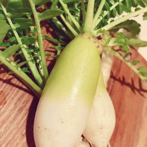 今年初めてのペットボトル大根収穫です🥬 鳥さんに突かれ食べられた大根たちもいました🥺 春の野菜はワクワクします🌸
