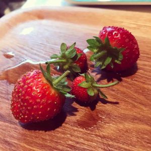 こんにちは神奈川は相変わらず雨続きです🌂 ふぞろいのいちごたち🍓収穫しました🌱 団子三兄弟の唄にのせてイチゴ四兄弟😳😳😳😳🎶🎵🎶🎶