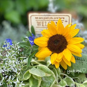 夏の寄せ植え🌻 ソロソロ息子宅の🏠 花の植え替え🌼 お嫁ちゃんが爆発してまーす💥 と。。😅 鉢を取りに行ったら 確かに爆発だわ🤭💦 シロタエギクとシルバーの モフモフしたリーフが巨大化😱 解体してリメイクしました〜🍃 ひまわりとアメリカンブルー💙 ベビーサンローズはまだ大丈夫そうだったので残しておきましょう🌱 後ろにやはりシロタエギク🤭 とりあえずモフモフちゃんは 捨てるのも可哀想なので😢 別の鉢に入れました🍃 野菜かーー?笑