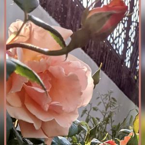 おはようございます バラ ロイヤルサンセット🌹🌹 ちょうど玄関までのアプローチに 咲いてくれています 病気もあまりないようです 今日も道行く人にも癒やしを与えてくれています