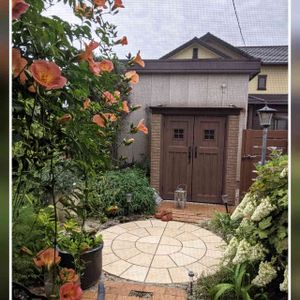 おはようございます 今日の晴れ間を有効利用しなくっちゃ❗🎶🎶 アガパンサスとシモツケのお花 宿根草はありがたい😊 手前の葉っぱはミョウガ こんな窮屈なところで毎年出てきます(*^^*)