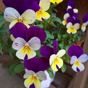 玄関ポーチのビオラ 「ほらほら 笑って!笑って~♪」 と励まされてるように感じました😊