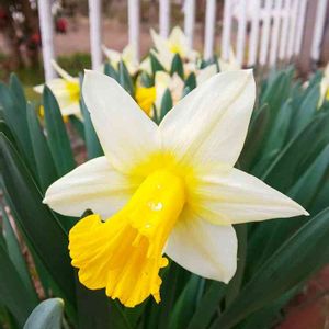 雨粒まとった今朝のラッパスイセン キュンキュン乙女倶楽部 イエロー・マジック🏷️に参加します💛 日々 困難に立ち向かっている医療&介護従事者の皆様にエールを送ります✨