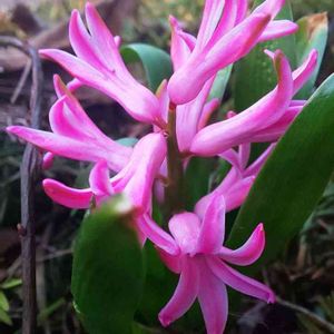 サプライジング💓ヒヤシンス✨ シェードガーデンの落ち葉のお布団かき分けニョキ\♡/ 球根植えてたこと すっかり忘れていました~😅 植物の、内に秘めたパワーにあらためて感動.。.:*♡✿ฺ 励まされます✿˘︶˘✿ ).。.:* ♬*゜