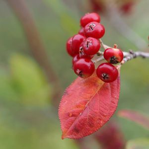 こんにちは☁ 今は15℃🤗 二十四節気 霜降(23日~6日) 鉢植えで育てている 西洋カマツカ🔴🔴 葉も実も紅くなりました😋😋 (✌^∀^)