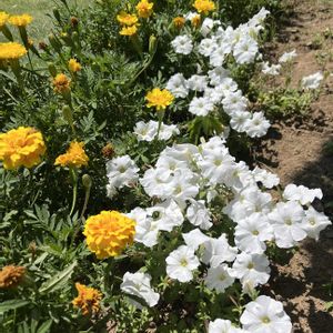 こんにちは マリーゴールドとペチュニアが 暑さに耐えています 夕方にも灌水してあげましょう