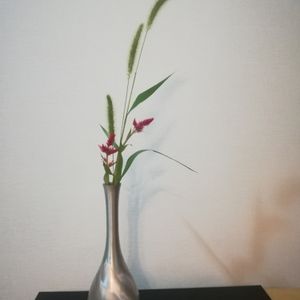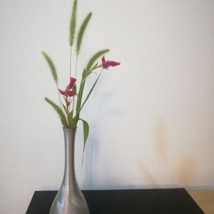 散歩中に見つけたエノコログサ。群れて風になびいている姿を見ました。 やはり自然の風景をみると、部屋にもこんな季節の景色を持ち帰りたいと思ってしまいます。 昨日いただいた、かわいらしいケイトウと一緒に生けました。