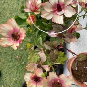 こんばんは⋆☾·̩͙꙳ ○で囲ったのがラックステセウス その下に咲いてる3つのお花は ランドセルのエヴァンジェリン 似すぎ〰️ 微妙に花色違うけど個別で見たら判断つかない😆 株が大きくなったらまた花色も変わるかなꕤ*