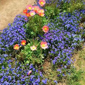 《一面の紫色のお花畑🌸》 ルリミゾカクシとは、キキョウ科ミゾカクシ属の多年草。別名ルリチョウソウ、ルリチョウチョウ、ロベリア。 原産地は南部アフリカのマラウィ、ナミビアから南アフリカにかけて。亜熱帯では多年草だが、温帯では秋蒔き一年草として扱うことが多い。開花期は春。暑さにも寒さにもあまり強くない🤗🌸