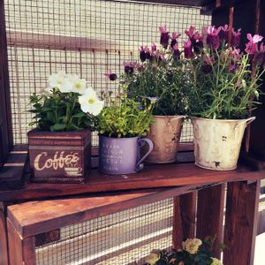 キャベツBOXをDIY お気に入りの苗たちを置きました! お花さんたちには丁度良い木陰♡