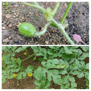 初トライのスイカ栽培 少し時期遅れですが、🍉🍉🍉を栽培しています プランターと地植えの両方で試験中です 人工受粉が済んで1番早い株でスイカの身長3cmぐらい💦 8月後半に無事収穫できることを祈っています😅
