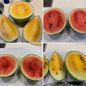 初めての🍉栽培でハラハラドキドキ😵💓しながら見守ってきたオンリーワンのニュー小玉スイカ💛が収穫予定日1週間前なのに割れていた😱 人工受粉した赤ちゃんスイカが長雨で☔全滅した後自然受粉で実った奇跡のスイカなので😃⤴️家族の健康願かけもし🙏いろんな意味で「希望のスイカ」と呼んでいたのですが😂試しに食べてみたら🔪なんと甘くてさっぱりとしたスイカ味でびっくり❣️ちゃんと完熟していました😋 皆元気でいられそう🌟頑張って育ってくれてありがとう😉👍🎶