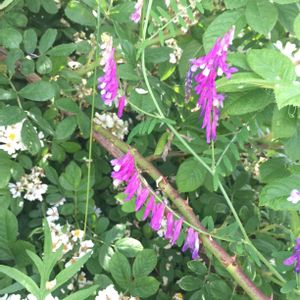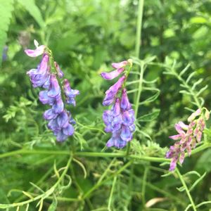 今日の咲きました 草藤 濃い紫の藤のような房咲きの花が大好きです、近所の麦畑に緑肥用として生えていた草藤が昨年こぼれ種で畦道に生えておりましたので種を取らせてもらいました 種まきした内の3本だけ芽が出てやっと咲いてくれました もさもさに茂ってもしっかりと種を取っていこうと思います