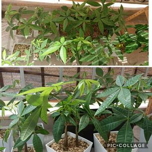 連投で失礼します❤️ 暫くサボっていたパキラの成長日記✨ 種の発芽から4ヶ月半位になりました。 強風やジメジメの長い梅雨を乗り越え、その後の猛烈な暑さも耐え抜いているので、幹もしっかりと太くなり、丈夫な幹になったに違いません😂 ↑と、信じたいです。 っていうか、気忙しくて手を抜いていたけど、遮光して夜の水やりをして置けば案外日差しに強い植物だったのね、というオチが正解です(笑) 間引いたけれど、こんなにも来年の引っ越しで、連れては行けないので、そろそろ里子に出そうと、真剣に検討中~✨ みどりのまとめに小さいパキラちゃんからの成長日記を付けています❤️ 良かったら覗きに来て下さいね❗