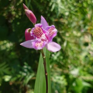 今日の花 シラン ①山野草即売会で見つけた チャボシラン三蝶咲 黄色の弁がアクセントになりとても可愛いコ ②③セントーレアギムノカルパ(ピンクダスティミラー) 銀葉の宿根ヤグルマソウ