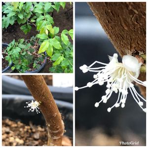 ジャポチカバが開花しました🌼 今日から何日後に口💋入るか楽しみで〜す😋(一粒を何人で分け合えば良いのかなぁ^^;)
