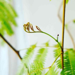 冬の間ひたすら葉をぱらぱらぱらぱら落としたエバーフレッシュがこの気温の高さでやっと本領発揮! 毎年春夏はこの新芽の不思議な形に心奪われます