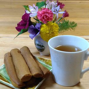 お晩なり過ぎました🌃 一昨日、大凧合戦が行われている所へ出向き、恒例の「ぽっぽ焼き」を買ってきました😅 長~い行列に並び25分ほど待ってやっとゲットしてきました😆✌️ 50本にしておきました😅 少し隣の娘宅へお裾分けしました😅 早速ほうじ茶といただきました😆✌️ 家に咲いている花を少し集めました😂😂😂 ご馳走さまでした😊🙏⤵️⤵️⤵️