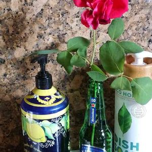 半咲きのまま、折れてしまってた薔薇。 今日1日しか保たないだろうから、せめてキッチンで愛でさせてね🤗。 ハイネケンの瓶がちょうどいいサイズ😊。