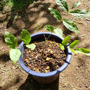 子供が通学路で見つけて来たり、食べた果物の種を植えたりしていたところからニョキニョキと生えて来ました! 芝桜の邪魔になっていたので移動の為掘り返したら、種は100円玉位の大きさの平べったい種でした‼︎ 子供も本当に出て来て喜んでるのですが…名前は何かなぁと聞かれても分からなくて…