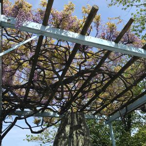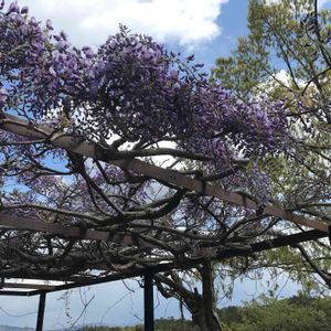 主人が買ってきた藤の花 花壇に鉢植えが置きっ放しだったので鉢植えを越えて根付いてしまいました あなたは悪くないの ズボラな主人と見て見ぬ振りをした私が悪いの そんな2人を責めないで綺麗な花を咲かせてくれました ありがとう