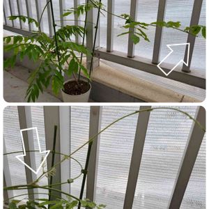 こんばんは😊 藤って凄い! メキメキ成長するんだけど、 ベランダに弦を巻き付けられなくて カットしたら(上の写真)、 また脇芽出てきた(下の写真)