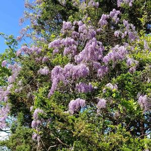 ウォーキングコースで発見した藤の花。 大木に絡んで、とても高い所で咲いていました😳 最近、ウォーキングをする事で、季節の移り変わりを感じられてます!