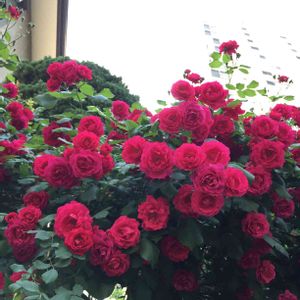 街を歩いていたら、赤いツルバラをよく見かけました。ある警察署の白いフェンス添いでも綺麗に咲いていましたが、不審がられたくないのでそこでは撮りませんでしたw 見た感じ、同じ品種なのかな?と。香りは無かったです。