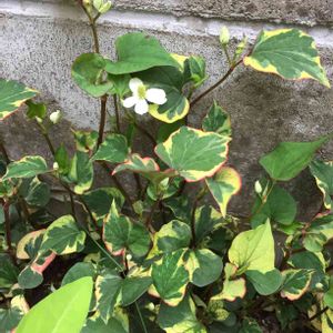 どくだみ3種 上2つは五色どくだみ下は左ふつうのどくだみ右は八重咲きどくだみ 今日見たら五色どくだみの赤がすごく赤くなっていたので、投稿してみました。😅