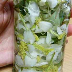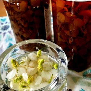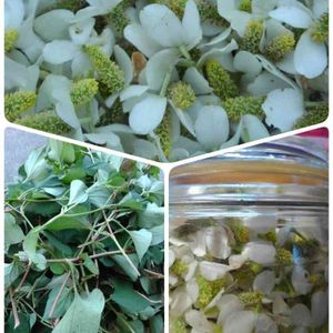 ドクダミの花閉じ込め ハーバリウムではなく アルコール漬け 虫除けに使えるって 今朝ドクダミ採取し作ってみた むむ 魔女の気分(笑)